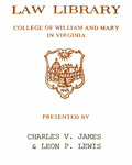 "Law Library, College of William & Mary in Virginia. Presented by Charles V. James & Leon P. Lewis"